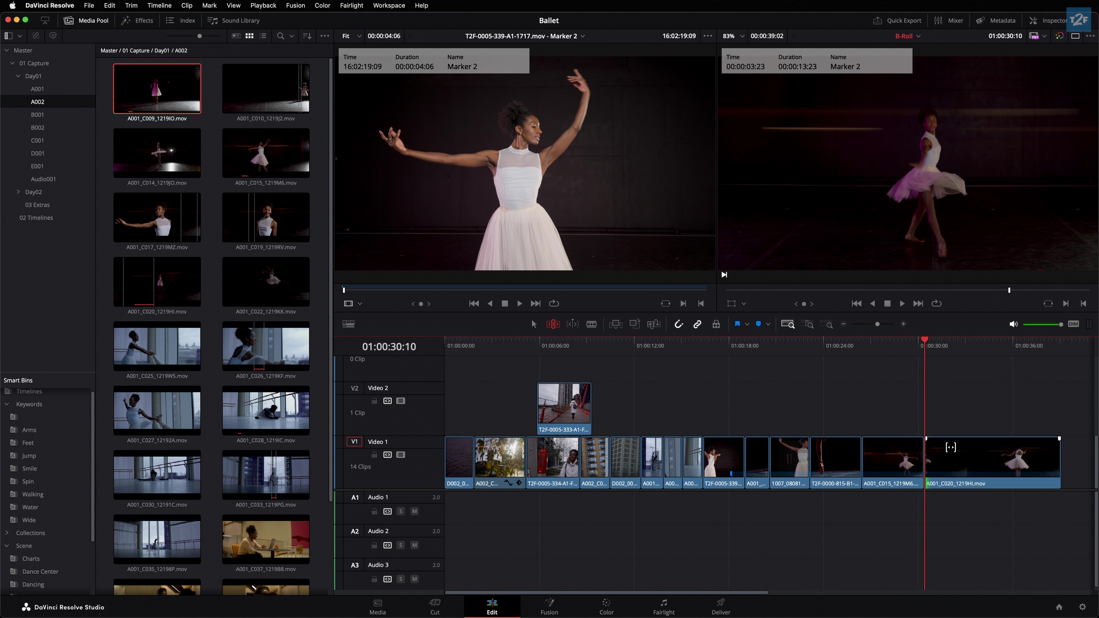 We scheduled a high-end shoot with a premier ballerina so you can work with professionally shot rushes. You'll have access to 2 hours of footage shot on a Red V-Raptor, Blackmagic Pocket Cinema 6K Pro, and Kodak Vision 3 35mm film on an Arriflex 35-III.