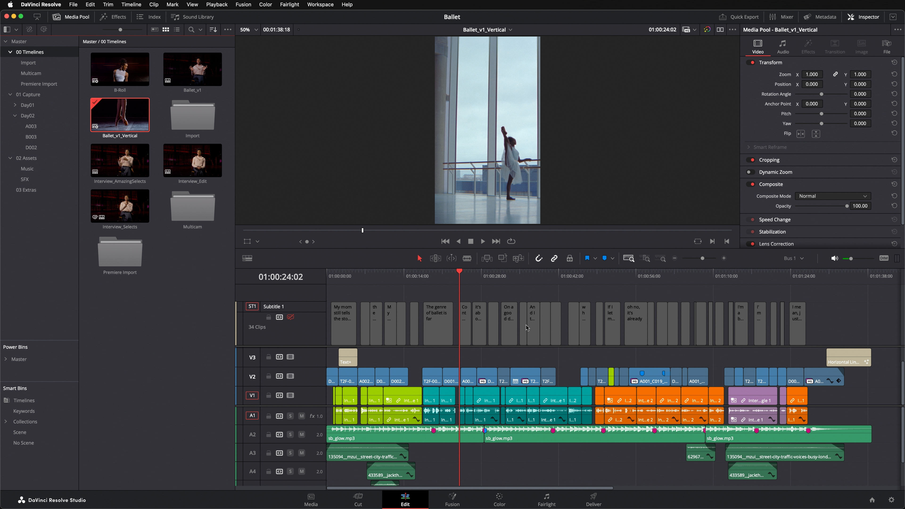 One last editing module, based in the edit page. We need to combine our visuals and interview into a single timeline. Our timeline is going to start getting crowded, so we'll cover even more tools and techniques that will help you keep your edit in order while being creative.